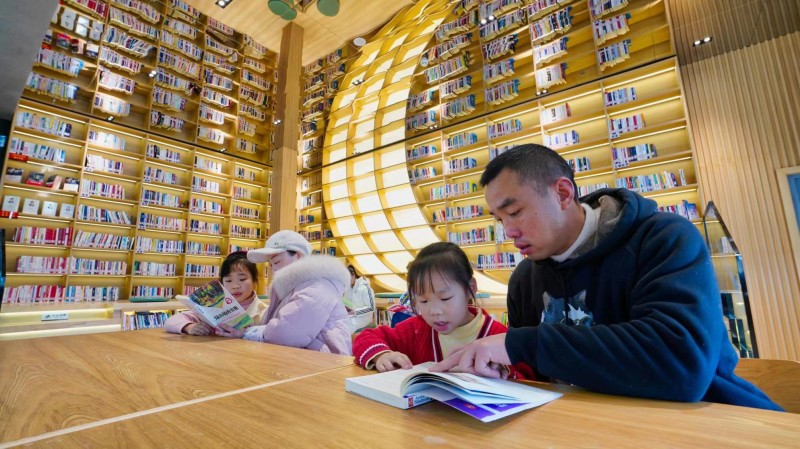 瀘州市龍馬潭區的“這有光”24小時城市書房內,市民們正在進行親子閱讀。楊尚威攝