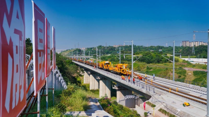 渝昆高鐵瀘永江段瀘州市龍馬潭區鋪軌現場。楊尚威攝