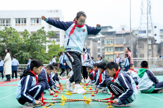 2023年,華鎣市雙河第二小學學生利用課間10分鐘開展趣味活動。邱海鷹攝
