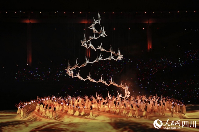 成都第31屆世界大學生夏季運動會開幕式上的精彩演出。人民網 趙祖樂攝