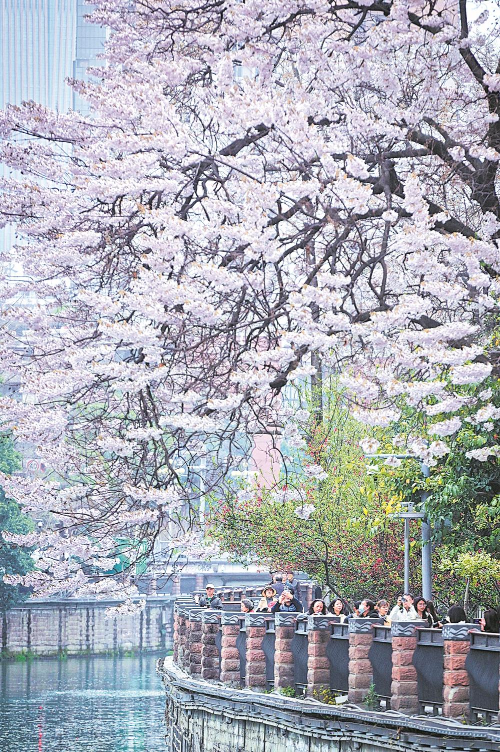 漫步錦江畔,小花瓣層層疊疊,競相開放,淡雅清新,前來拍照打卡的市民游客絡繹不絕。