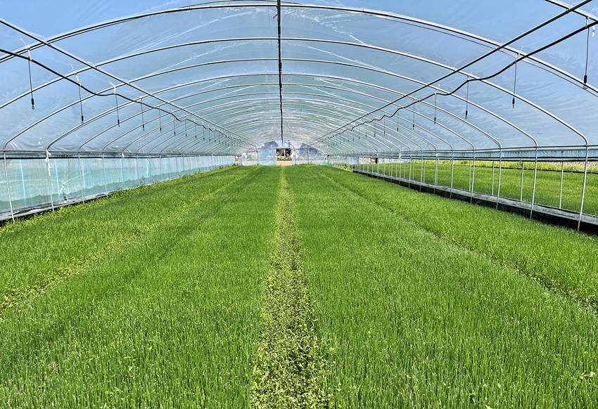 在樂山,農機身影隨處可見。位于蘇稽鎮長春村的樂山市悅稼生態農業有限公司大蔥育苗大棚內,翠綠的蔥苗長勢正好,兩位工人正在農機“神器”的幫助下為大蔥剪葉。