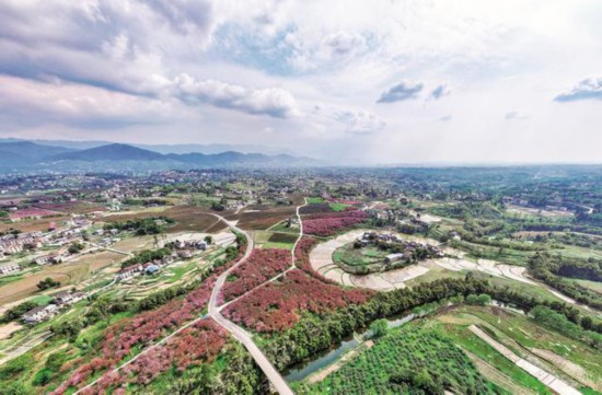 3月27日,華鎣市祿市鎮涼水井村海棠博覽園綻放的海棠花,在藍天白云映襯下,把鄉村點綴得格外美麗,吸引不少市民前來踏青賞花,樂享春天的美好。華鎣融媒 邱海鷹 攝