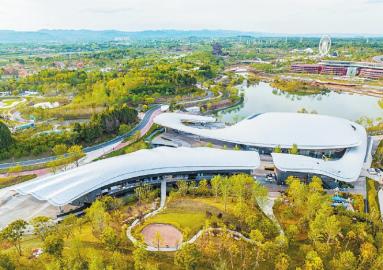 錦云樓是世園會主會場內的最高建筑,也是園區的地標性建筑。四川日報全媒體記者 吳聃 攝