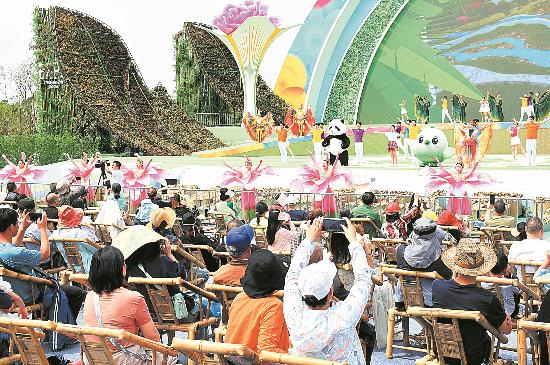 游客觀看世園會主舞臺演出