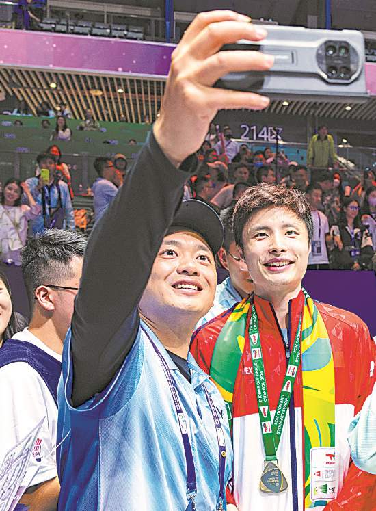 看著中國羽毛球隊上下歡呼雀躍,鄧笑露出了欣慰的笑容。過去的10多天時間里,這位來自成都少體校的漢子早出晚歸,每天從早上7點一直工作到深夜11點,沒有抱怨過一句,他對記者說:“國羽拿下雙冠,一切的付出都是值得的?!睋?,成都2024湯尤杯組委會專職服務國家隊工作人員有7人,全面負責國羽在成都2024年湯尤杯比賽期間的吃、住、行,他們以精心的服務確保國羽參賽狀態滿滿。