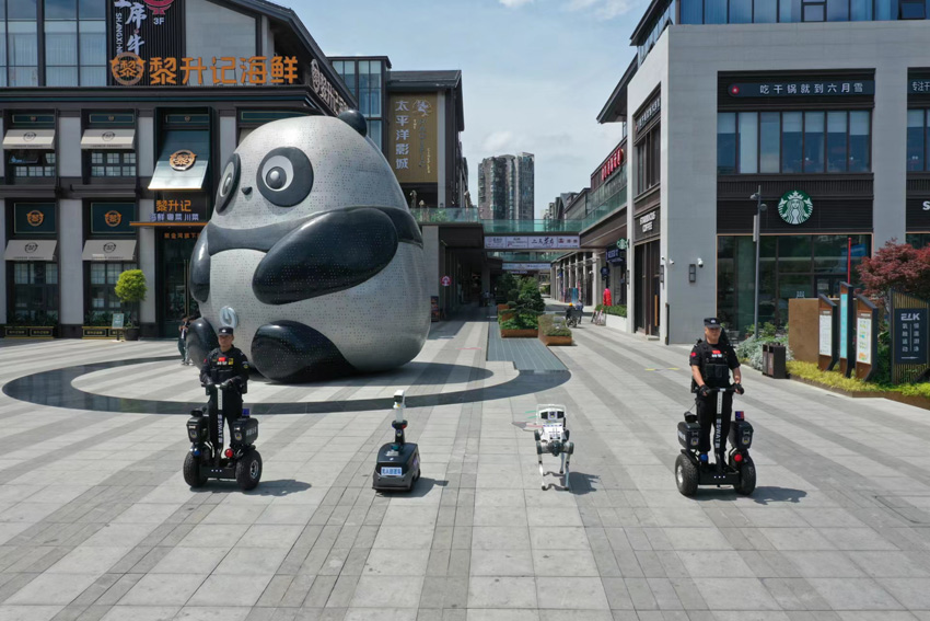 今年5月以來,巡邏機器狗、無人巡邏車、機器人交通智能勸導員等人工智能設備,在綿陽市科技城新區的街頭先后亮相:無人巡邏車可續航100公里,能協助交警部門抓拍路面交通違法、監控實時路況信息、一鍵報警、喊話宣傳等;巡邏機器狗則具備自主巡檢、安全分析預警、智能監測、智慧管控四大特點。它們都有聰明的“大腦”、靈活的“手腳”,提升了城市智慧警務的“科技戰斗力”。
