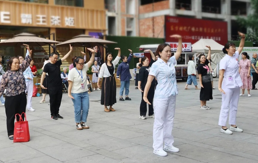 中醫養生氣功八段錦、呼吸操,海姆立克急救法、心肺復蘇,廣場成了健康宣傳的課堂。醫護人員現場示范、引導群眾共同練習,進一步提高了群眾的自救能力,也普及了中醫養生知識。