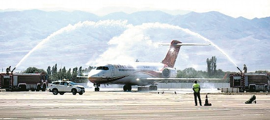 6月7日,一架機身印有“太陽神鳥”標識的國產ARJ21飛機從喀什徠寧國際機場起飛。經過兩個多小時空中飛行后,飛機平穩降落至塔吉克斯坦胡占德機場。這標志著由ARJ21飛機執飛的首條中亞航線成功首航,國產商用飛機國際化發展又邁出一大步。ARJ21飛機是我國擁有完全自主知識產權的國產飛機。從立項到正式交付,再到邁入規?;虡I運營,ARJ21飛機一路走來與成都緊密相連,其機頭為“成都造”,成都航空則為國產民機示范運營商。(成都日報錦觀新聞記者 楊富 文/圖)