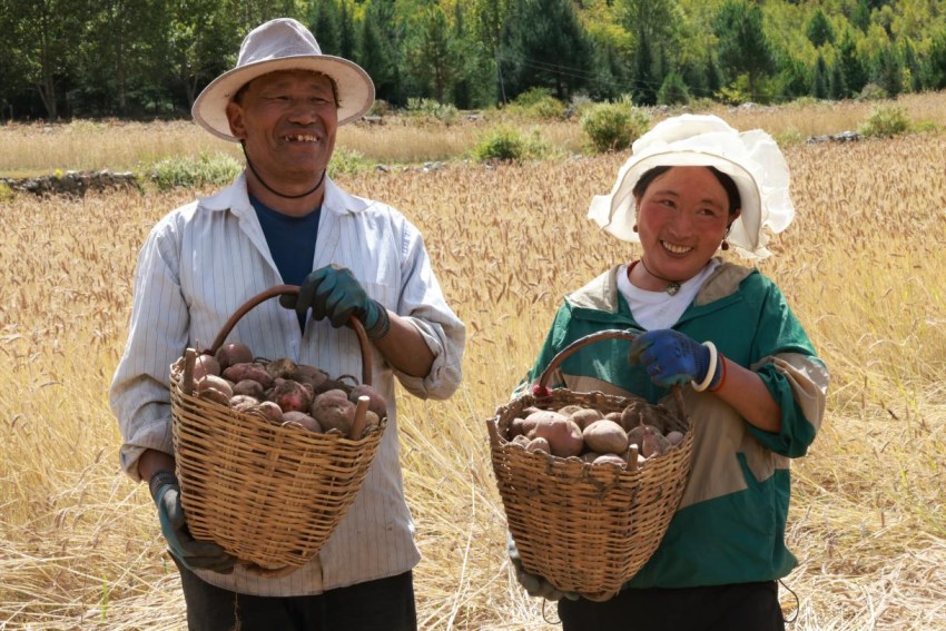 秋收季雅江縣米龍鄉村民土豆豐收 。張莉攝
