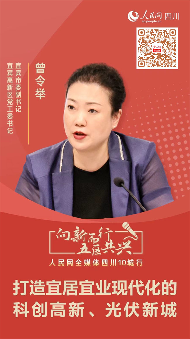 在此期間,宜賓市委副書記、宜賓高新區黨工委書記曾令舉接受了人民網專訪,分享宜賓高新區緊扣“高”“新”定位,圍繞光伏產業建圈強鏈,加強科技創新賦能,推動城鄉融合發展,打造國家級晶硅光伏產業集群和推動“產城人”融合發展,建設科創高新、光伏新城的考量和實踐。