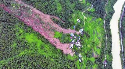 7月8日開始,團堡梁村持續降雨。因解放灣組改板灣背后的向陽坡山體有變形跡象,每年汛期只要雨一大,村里都會提前安排山腳下村民轉移。7月11日凌晨3時27分,改板灣突發山體滑坡,3戶村民房屋被完全摧毀,其他村民房屋均受到不同程度的損傷。所幸,山腳下22戶34位村民已于10日21時前完成避險轉移。
