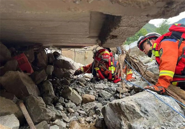救援力量仍在持續增加。7月21日7時50分許,四川省消防救援總隊115人整裝待發,他們攜帶雷達生命探測儀、音視頻生命探測儀、搜救犬、通信便攜站、救生擔架和簡易破拆裝備,兵分五路進入新華村。