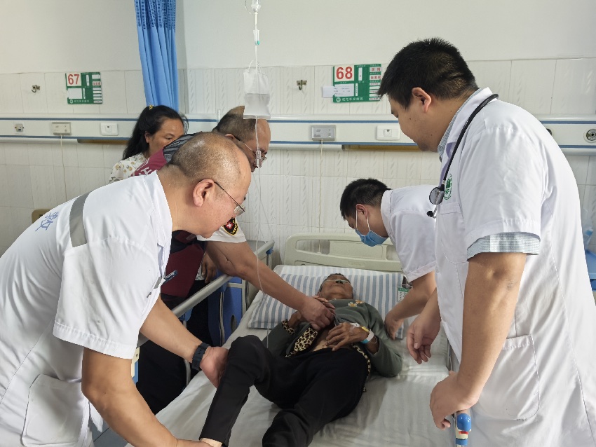 7月21日,肖袁英在石棉縣人民醫院再次見到了那位被救的村民,村民伸出手握住了她的手。