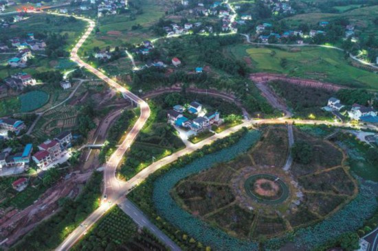 華鎣市祿市鎮涼水井村的路燈把村道串連成光帶,照亮了整個鄉村。
