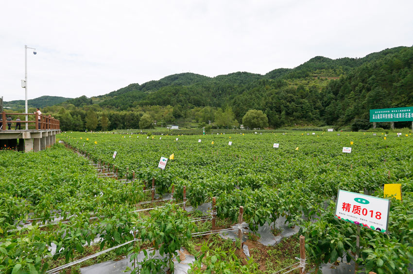 “近年來,面積120畝的基地圍繞朝天傳統的甘藍、辣椒等主導蔬菜產品,引進線椒、菜椒、螺絲椒、牛心甘藍等新品種150余個,評出優質抗病高產新品種20余個,示范面積達5000畝?!睂嶒炚竞突噩F場負責人、四川省農科院園藝所副主任苗明軍在簡短的介紹中,關于“新品種”的詞匯用得最多。他說,今年辣椒市場行情好,產地收購價維持在3元每公斤左右。按畝產4000公斤算,單季辣椒畝收入輕松過萬元,當地群眾種植積極性很高。