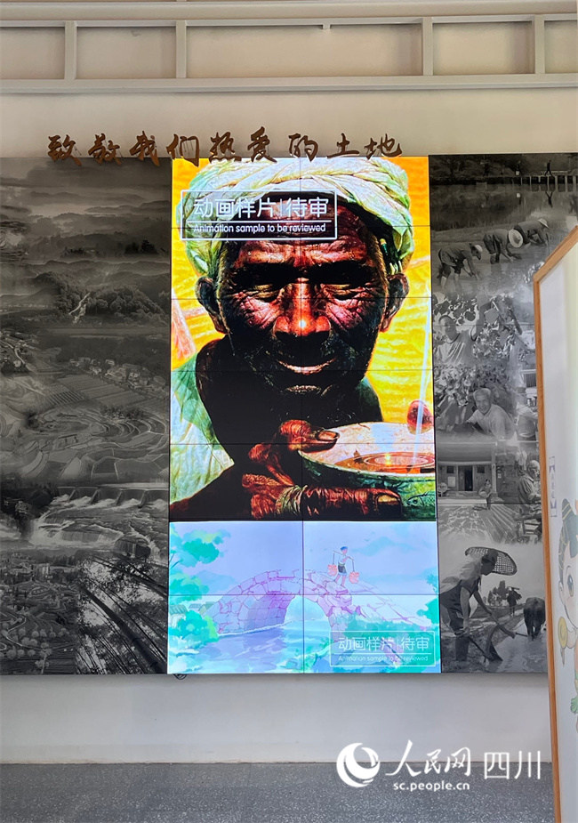 雙城村里以油畫《父親》為原型制作的新媒體產品。人民網記者 郭瑩攝