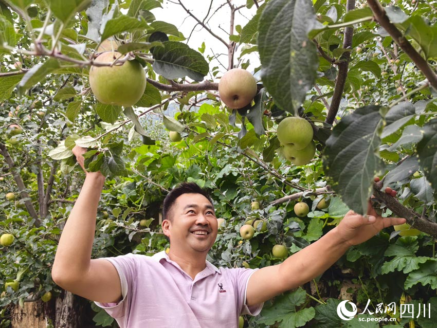 果農檢查蘋果生長情況。人民網記者 劉海天攝