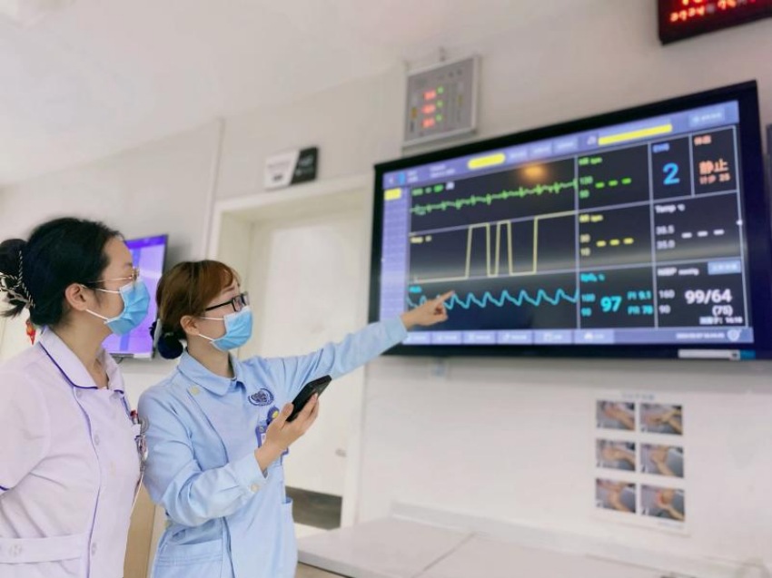醫院潛心打造智慧病房,為患者提供智慧化醫療、智慧化服務,讓醫護人員提升工作效率,保障醫療質量與安全,實現患者、醫護“雙滿意”。智慧服務植入智慧病房,醫院逐步通過床旁交互智能終端,推進HIS、LIS、PACS等多平臺互聯互通,住院患者在病床即可隨時獲取住院費用、檢查檢驗、護理信息、用藥說明等內容,還能接收醫護人員發送的各類健康宣教視頻,并實現自主掃碼點餐。智慧醫療融入“床旁守護”,移動護理推車+手持PDA終端構成智慧“護士站”,護理人員攜設備移步病床即可完成治療操作、病情觀察和文書記錄等常規工作,打造了護理人員“床旁守護”新模式。例如,護士通過手持PDA終端掃碼患者腕帶獲取相關資料,高效完成醫囑信息、患者身份核查,切實保障醫囑執行和治療安全。生命體征監測注入智能預警,將穿戴設備置于患者心臟或手腕上,可實時采集、傳輸呼吸、心率、血壓、血氧等生命體征信息,同步將數據傳輸到護士站的中央監護屏及護理文書病歷,患者的生命體征一覽無遺,一旦發現異常,第一時間采取應急措施。重點人群管理介入智能監測,在病區護士站專門設置電子白板系統,主要展示高風險患者人群、患者重要及特殊治療安排、特別提醒等內容,幫助醫護人員實時掌握病區患者整體情況,改變了傳統的手寫方式,提高了重點人群監測管理的及時性和針對性,讓診療過程更精準、更安全、更高效,極?減少院內患者不良事件的發生。