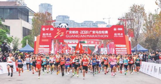 11月23日上午,以“共富思源 奔跑廣安”為主題的廣安郵政·2024廣安馬拉松賽激情開跑,來自國內外共1.5萬余名選手相聚偉人故里,近距離感受廣安歷史人文、城市文旅景觀和城市商業氛圍,以奔跑之姿為成渝地區雙城經濟圈建設助陣。