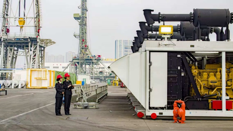 成都海關所屬德陽海關關員在出口石油鉆機生產企業指導開展加工貿易業務。王強攝