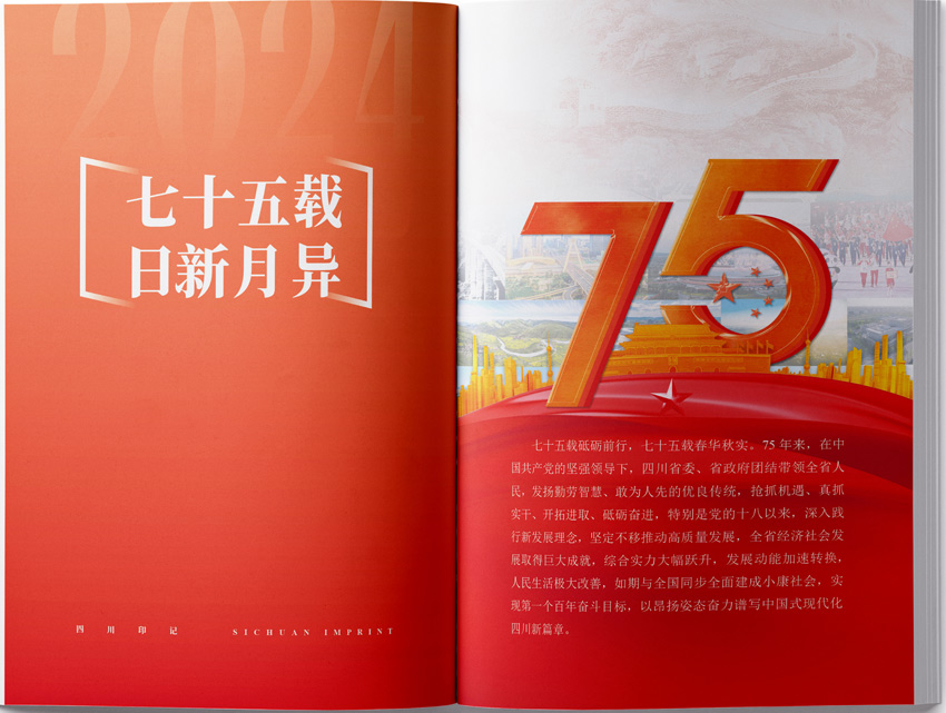 特設專版,銘刻七十五載四川輝煌歷程。2024年是中華人民共和國成立75周年,《四川印記(2024)》聚焦天府之地,以“七十五載 日新月異”為題,設“數說四川75年”、全省21市(州)城市新舊對比圖表專版,直觀生動展現四川在過去75年波瀾壯闊的歷程中發生的深刻變化。