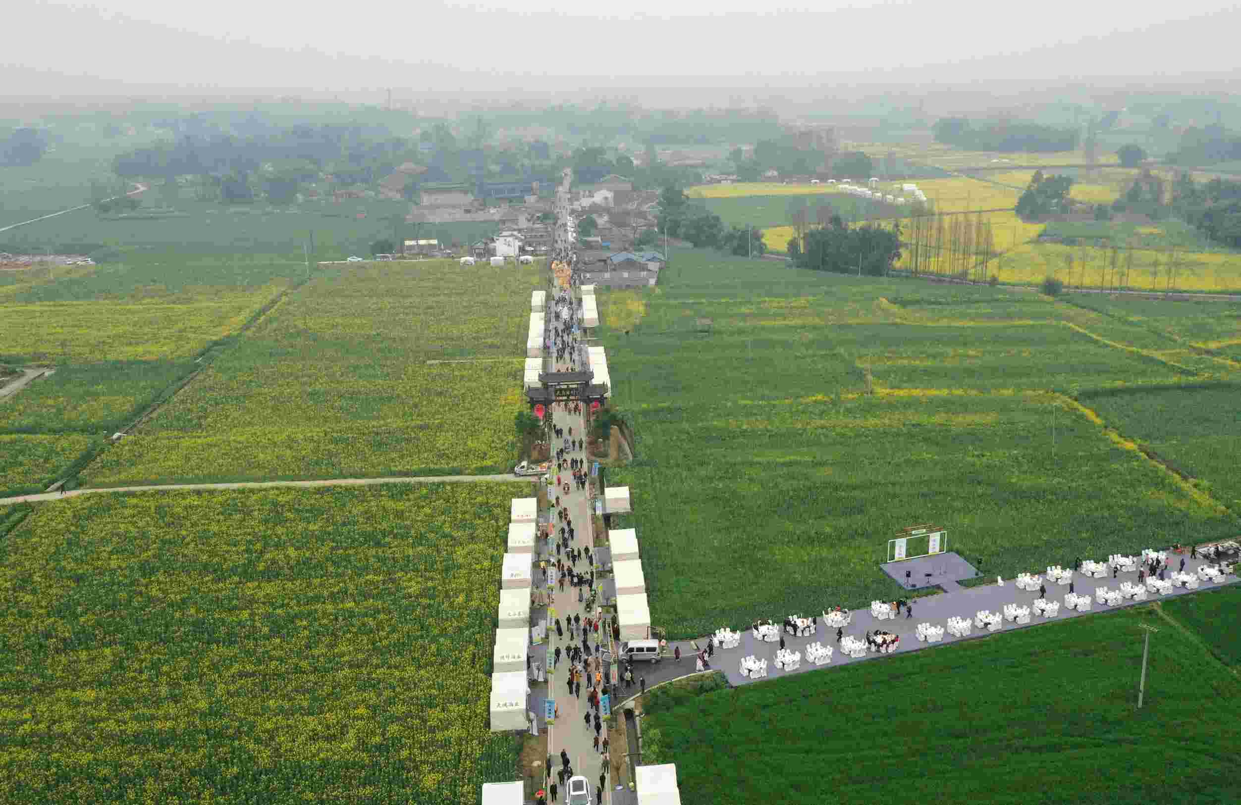 據悉,作為今年春糖季的首場活動,本屆天府酒村集市活動將持續到3月27日,圍繞“看展演、享賽事、賞花海、品美食、逛大集、話發展”6大主題,推出36項特色活動,游客可穿梭金色花海,體驗放飛風箏、圍爐煮茶、吃壩壩宴、星空露營等等,感受“一步一景、一村一韻”的崇州鄉村魅力。