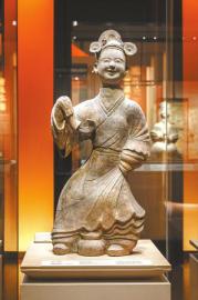 而出土于后蜀重臣趙廷隱墓的36件樂舞俑,則生動刻畫了五代成都的市井音樂圖景。展廳里的7件樂俑手持橫笛、雞婁鼓等樂器,組合恰如《新唐書》所載俗樂“立部伎”,展現了音樂從廟堂流向民間的鮮活脈絡。其中“擊羯鼓俑”動態逼真,仿佛鼓點仍回蕩在錦官城的街頭巷尾;而“花冠女舞俑”身姿曼妙,印證了柘枝舞從健舞轉向婉約的審美變遷,折射出亂世中成都對藝術之美的執著堅守。