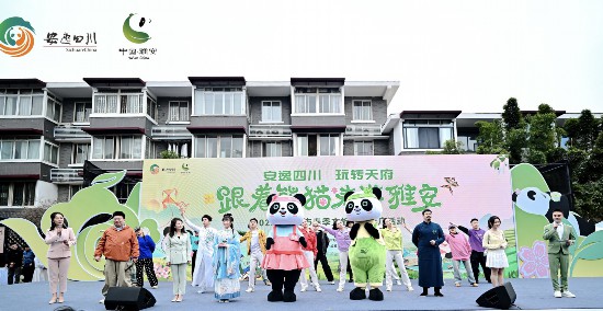 憨態可掬的“雅雅 安安”、科技酷炫的“機甲熊貓”、清雅的蒙頂春茶與獨具特色的歌舞節目,吸引大批游客駐足觀看?;顒右浴案茇埓河窝虐病睘橹黝},通過情景式推介、非遺展演、互動體驗等形式,聚焦“賞春花”“喝春茶”“看熊貓”“漫生活”四大篇章,串聯起雅安春季文旅亮點,向成都市民及現場游客展示雅安春季特色文旅資源和產品的獨特魅力,讓大家沉浸式體驗雅安春日的浪漫畫卷,邀請八方游客共赴“詩意春天”。