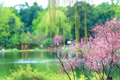 浣花溪畔,梅紅柳綠的春日美景。成都杜甫草堂博物館供圖