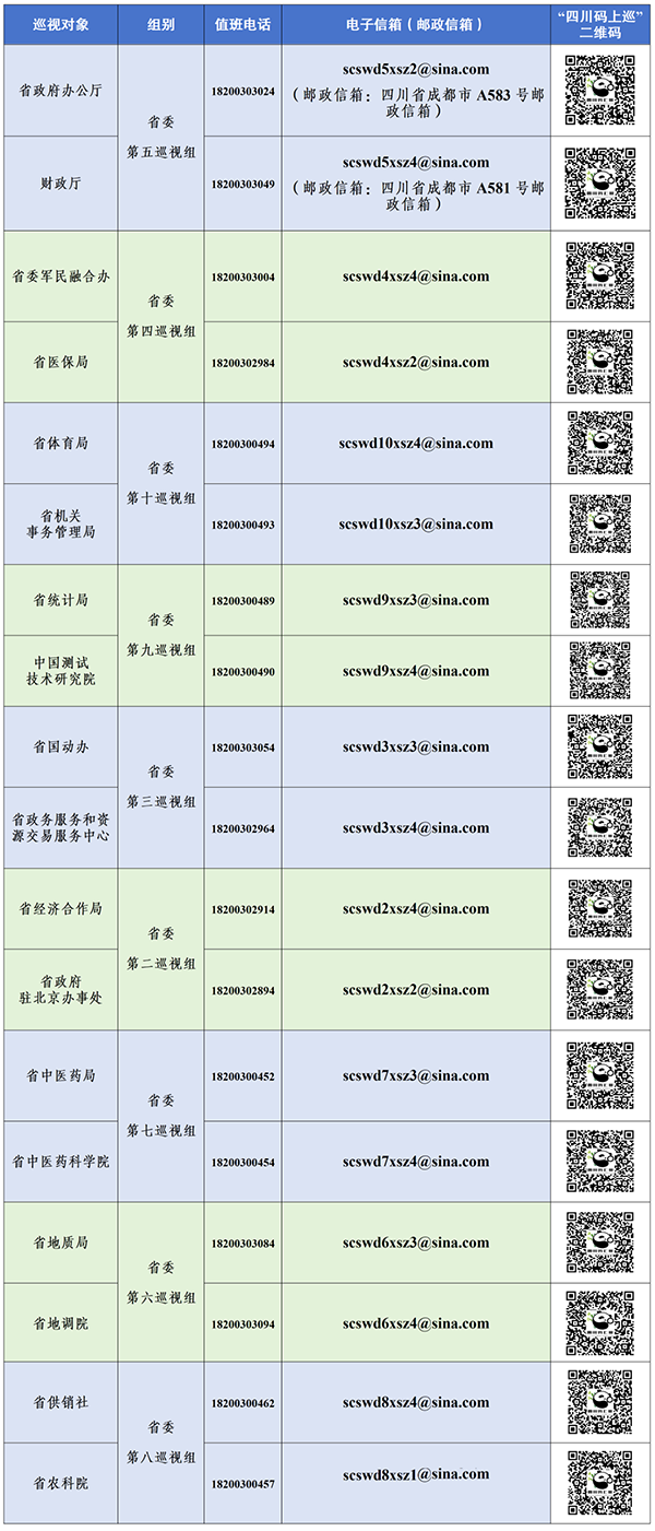 十二屆省委第六輪第二批巡視各省委巡視組聯系方式: