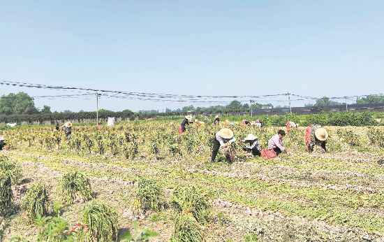 ?、俟と藗冊谛露紖^新繁鎮大蒜種植基地收蒜。