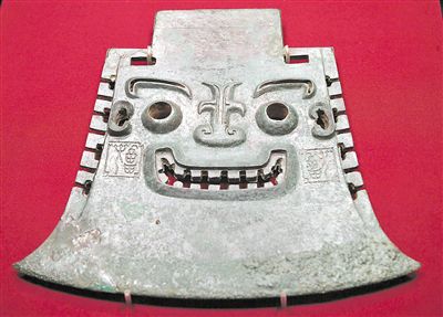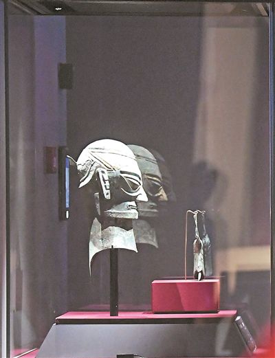 戴金面罩青銅人頭像 《哪吒2》中結界獸形象來源 四川廣漢三星堆遺址二號祭祀坑出土