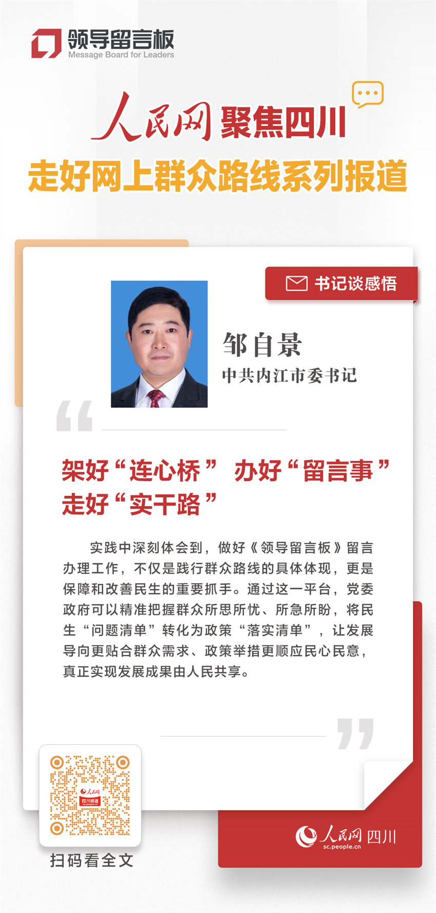 書記談感悟|內江市委書記鄒自景:架好“連心橋” 辦好“留言事” 走好“實干路”