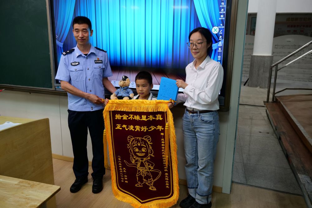 據了解,廖元祎今年7歲,是成都市溫江區新世紀外國語學校小學一年級學生?!袄蠋熣f過,撿到東西要交給警察叔叔,這是我應該做的,沒想到還得到了大家的表揚?!绷卧t說。