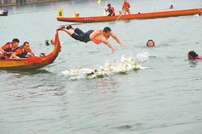 5月31日,閬中市開展歷史名人江上游和端午賽龍舟、搶鴨子等民俗活動。 張曉東 攝(C視覺)