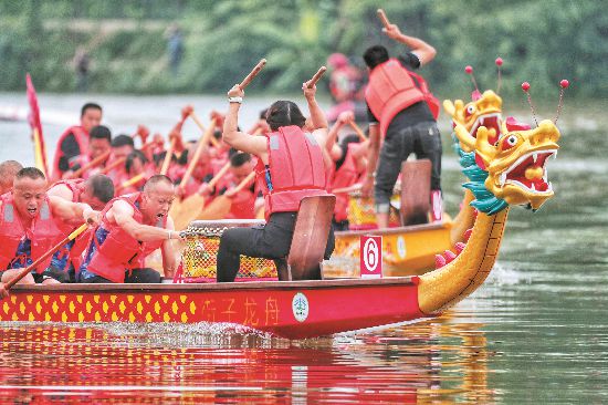 賽事之外,豐富多元的配套活動拉開帷幕。文化大戲在岸上接續開展,今年龍舟展演圍繞端午祈福、龍舟競渡等元素,推出1場民俗文化儀式展演、1場龍舟競渡展演、N場配套活動?!洱堯v盛世·歡慶端午》舞龍鼓樂、21個市(州)2210件文創產品集市、漢服民俗巡游、“龍舟記憶”攝影展等系列活動將悉數開展,充分彰顯中華優秀傳統文化魅力和群眾精神文化生活的活力。