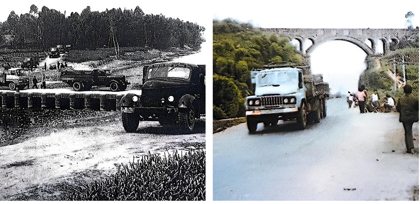 20世紀80年代,眉仁公路改造前(左圖)后(右圖)對比。眉山市黨史和地方志編纂中心供圖