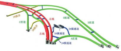 工程設計方相關負責人介紹,明線繞路多,在大山“肚子”里修一座立交橋是最優選擇,可減少繞行6.8公里,節約用地約33畝。為避免車輛走錯路,隧道內專門設置了主動發光與被動反光結合的光電標志。在平均海拔2500米的山區修一座如此龐大的地下立交橋,給施工帶來新難度。施工中,幾乎囊