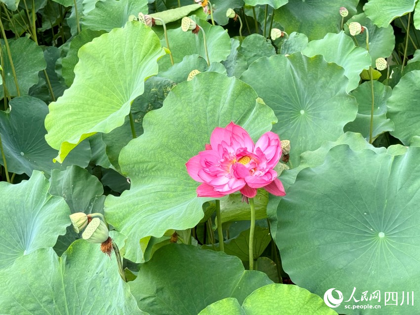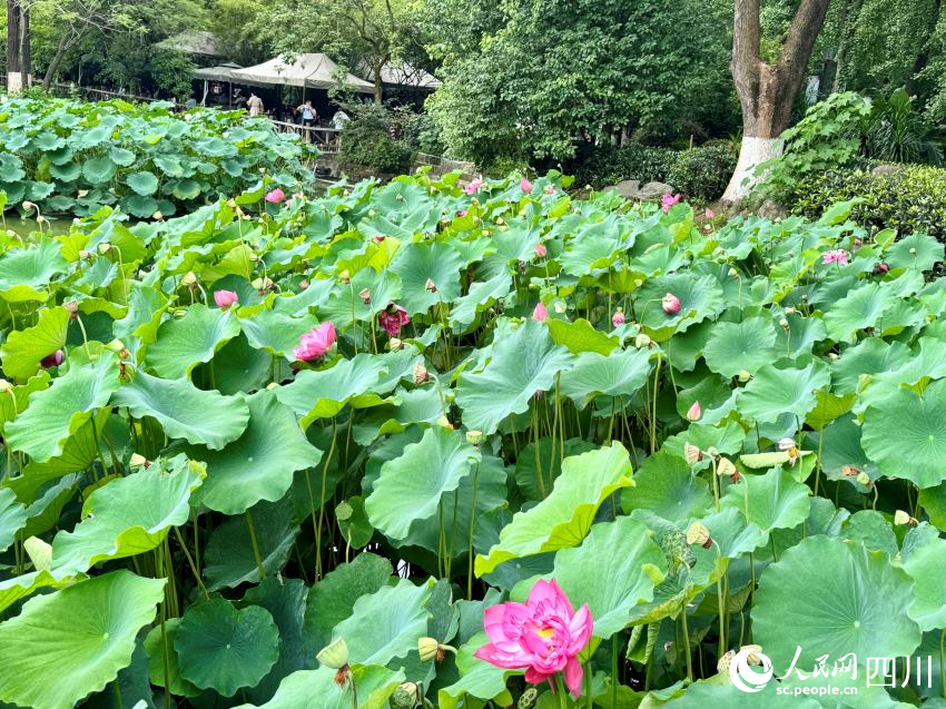 今年,成都文化公園精心打造了“紅白粉”三色荷花景觀帶,園內多處荷花主題打卡點,成了朋友圈里夏日大片的“生產基地”。