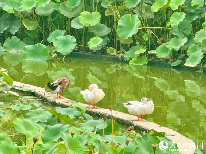 大雨過后的荷花池里,幾只小鴨子悠然嬉戲,為靜謐的荷塘增添了幾分靈動與生機,引得游客紛紛駐足觀看,并用鏡頭記錄下這溫馨的一幕。