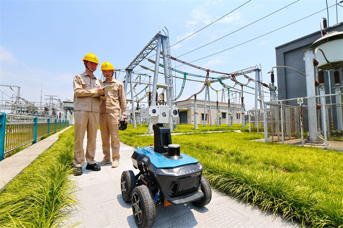 烈日當空,國網成都供電公司超高壓運檢中心工作人員以“機器人+高清視頻+無人機”空地智能化立體巡檢模式對500千伏尖山變電站進行高溫保供特殊巡視。陳翔攝