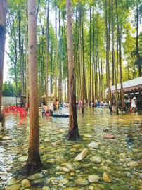位于都江堰的豬圈咖啡農家樂,在天氣最熱的這幾天上新“森林水鄉”項目,周末日均客流近千人次。四川日報全媒體記者 陳碧紅 攝