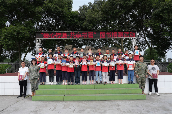 某部隊到瀘州市一小學捐贈圖書。瀘州市退役軍人事務局供圖