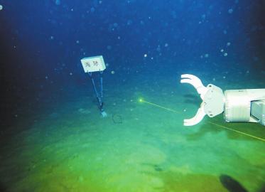 8月23日,“海琴”號在4140米深海底放置標識。(中山大學供圖)