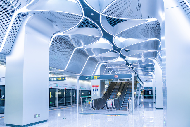 車站使用的鋁板不僅能塑造視覺意象,還具備吸音降噪、優化通風等功能,實現了文化表達與實用性能的有機統一。