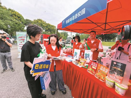 “我的盲盒里有牛肉醬,聽說下飯、拌面都很好吃?!眮碜院颖北6ǖ耐鈬Z專業新生侯金皓說道?!爸拔揖唾I過這款酥香蠶豆,沒想到原產地是郫都啊?!眮碜院笔叩睦钯皇且粋€“零食控”,打開“盲盒”的瞬間,她興奮地說道。雖然每個禮品袋里的“內容”不盡相同,但都是地道的“郫都味道”——楊國福的重慶小面;鵑城豆瓣的香辣牛肉醬、鵑城蘸水醬、酥香蠶豆、豆瓣蘸料;有友的豬皮晶、雞腳筋、泡鳳爪;丹丹郫縣豆瓣的油潑辣子、香辣蘸料,每一款都是細分賽道的佼佼者。