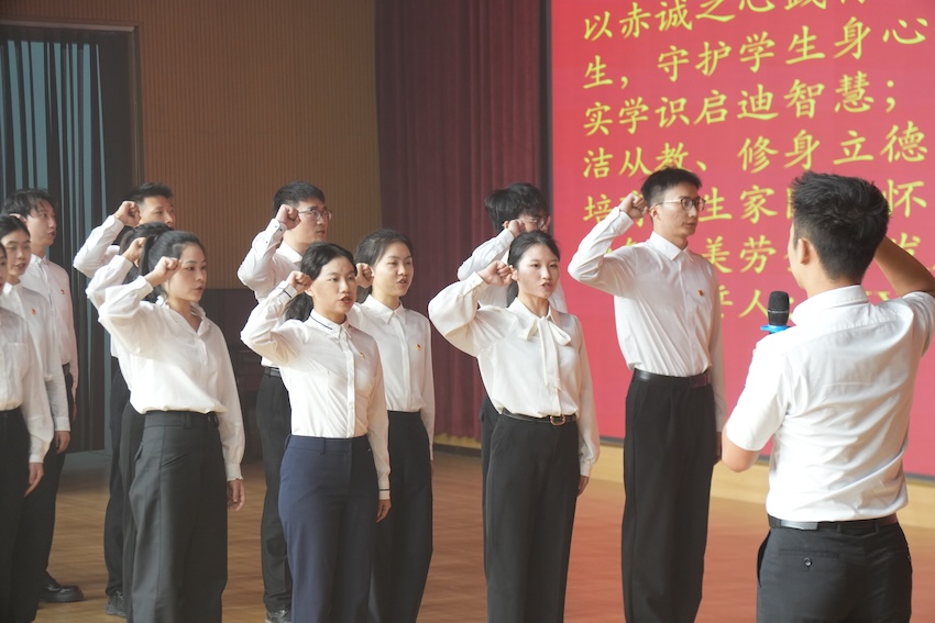 活動在鏗鏘有力的師德師風宣誓中拉開帷幕,30位新入職教師代表許下“為培養德智體美勞全面發展的社會主義建設者和接班人奮斗終身”的莊嚴承諾,讓錦江教育的初心使命薪火相傳。