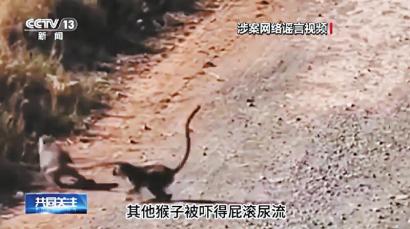 總臺央視節目關注人猴大戰謠言。圖為謠言視頻里的猴子截圖。