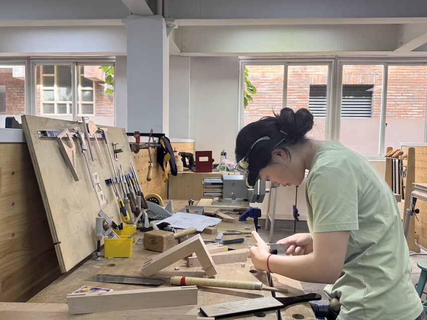 2024年,姜楡含成為四川國際標榜職業學院家具設計與制造專業的一名學生,她從基礎的木材特性、工具使用學起,在導師指導下系統鉆研傳統木工工藝、榫卯制作與機器木工技藝。一年間,她從一名普通學生到走上全國技能大賽的舞臺,迅速成長背后正是源于對精益求精的追求。